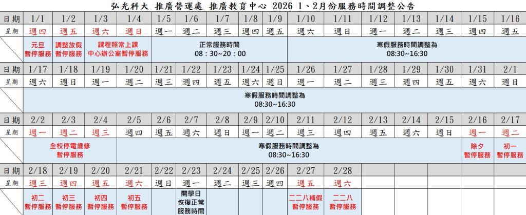 【寒假服務時間調整】📣1-2月份服務時間調整公告📣